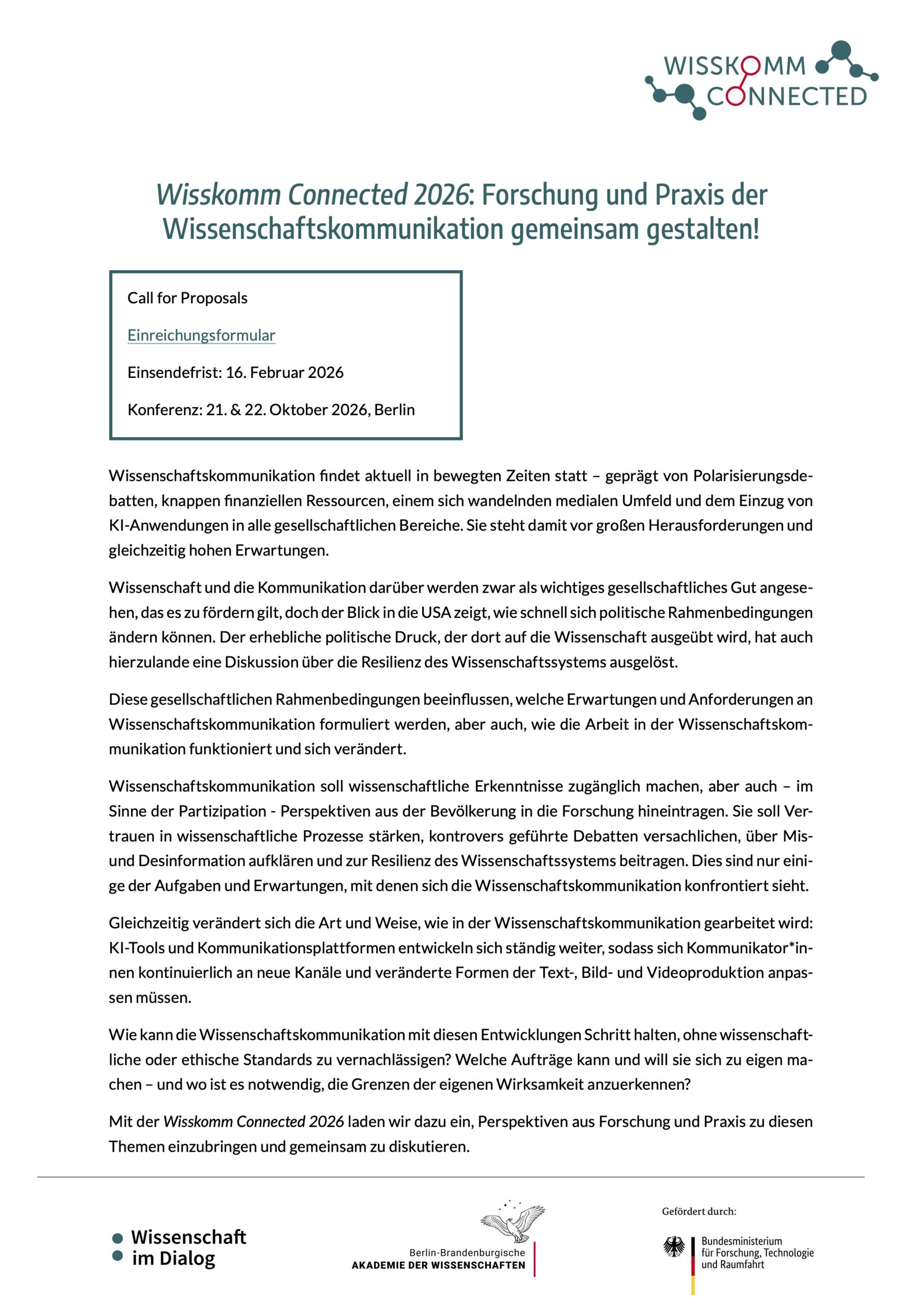 Call for Proposals: Wisskomm Connected 2026